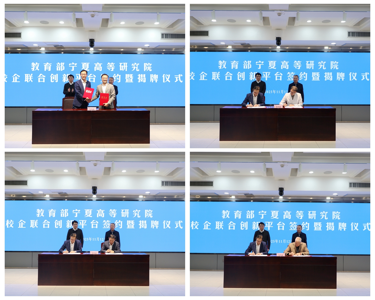宁夏大学党委副书记、校长、教育部宁夏高等研究院院长彭志科代表学校向关心支持宁夏大学建设发展的上级领导部门和合作企业表示衷心感谢。他指出,通过校企联合共建高等研究院,将充分发挥高校教育科技人才一体化优势和企业的市场优势,搭建起高效的产学研用合作平台,形成“人才培养—科研创新—产业升级”的良性循环。希望各方以此次签约授牌为契机,深耕产学研用融合沃土,勇闯科技创新前沿领域,让人才在合作中成长、成果在实践中转化、产业在协同中升级,携手筑牢创新之基、共绘发展蓝图,让校企合作之花在宁夏大地绚烂绽放,为教育强国建设、区域经济高质量发展书写更加精彩的篇章。