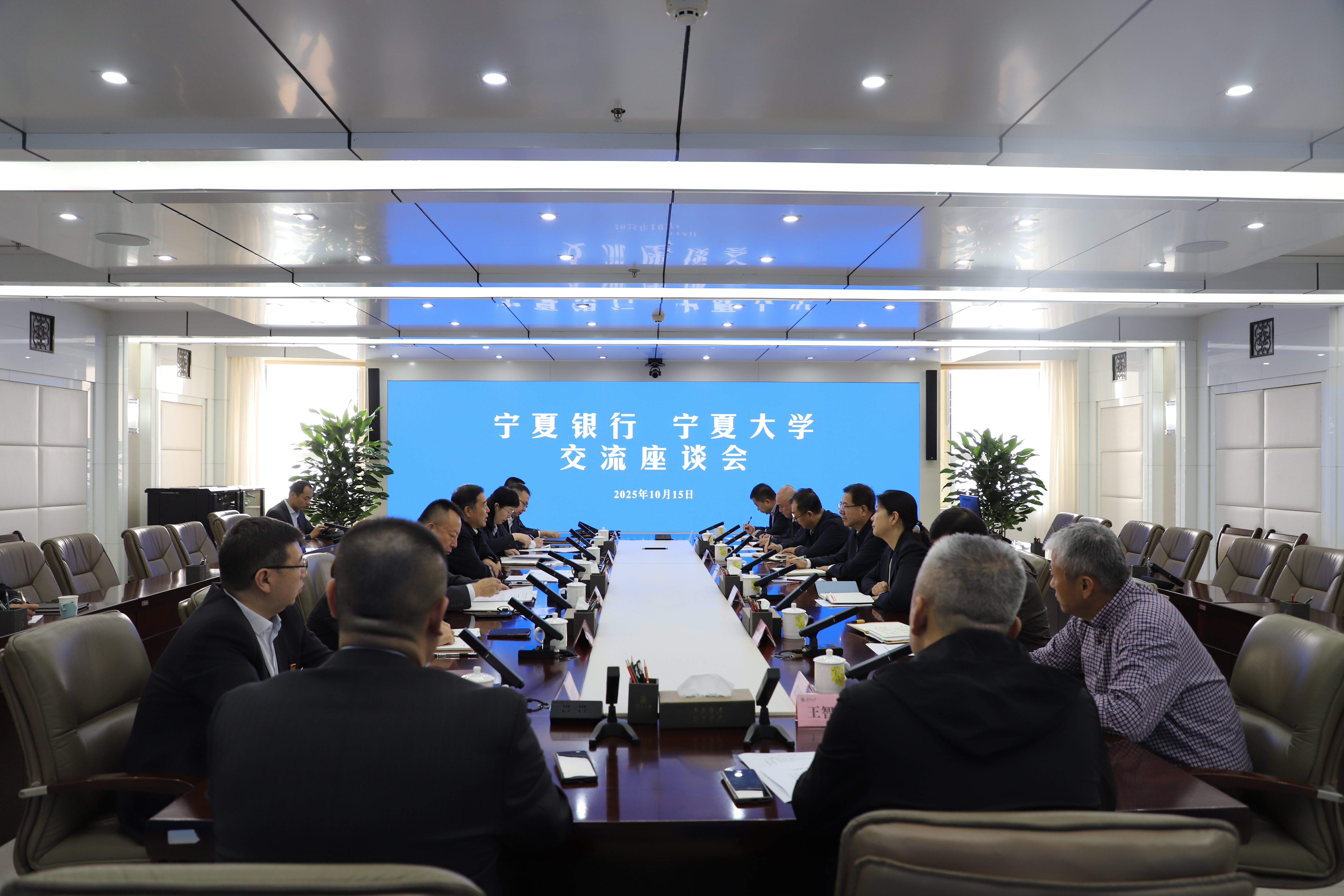 宁夏银行各金融部及新市区支行相关负责人,我校办公室、对外合作交流处、党委学生工作部、网络与信息管理中心、计划财务处、后勤保障部等相关单位负责人参加座谈。