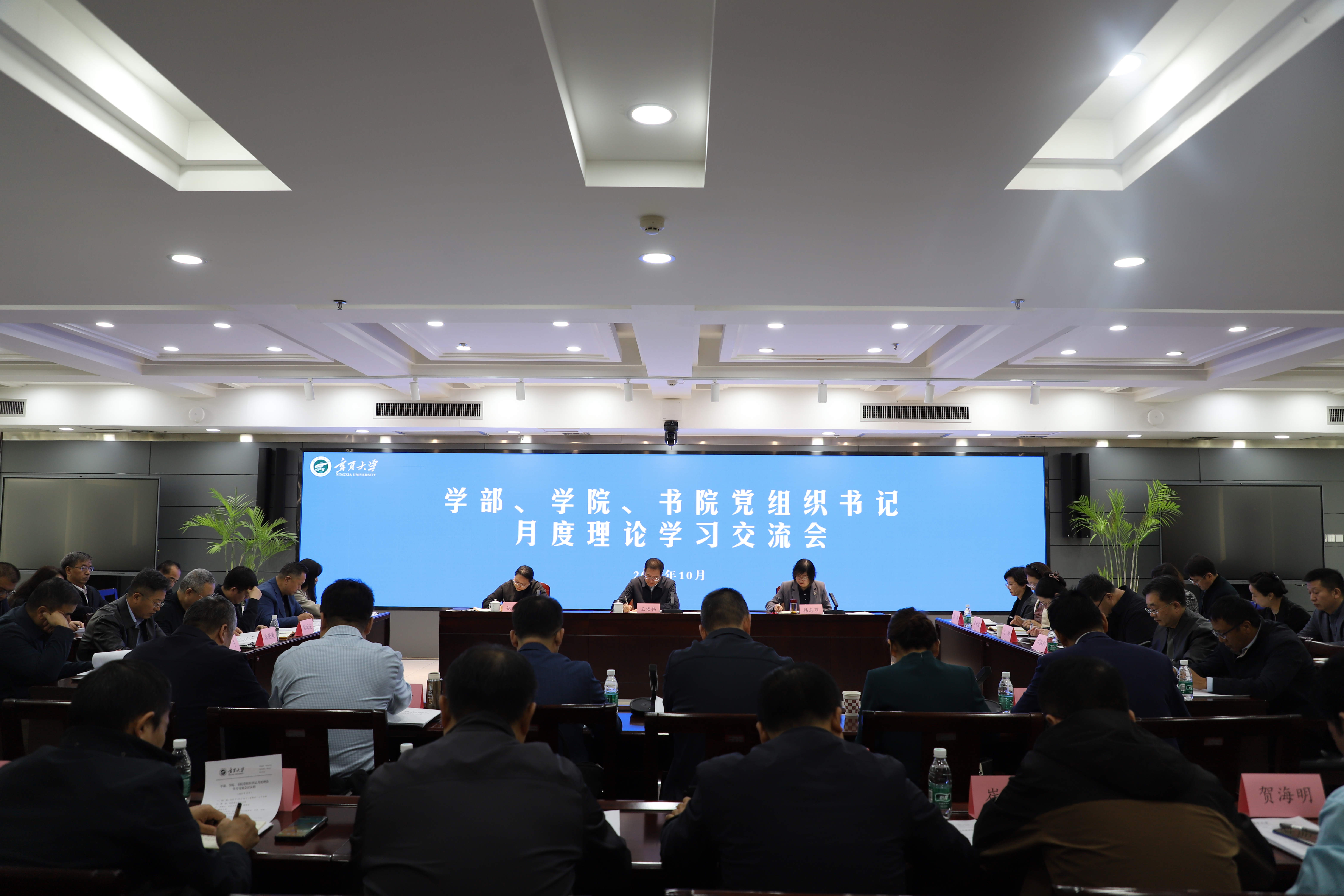 【宁夏大学新闻中心讯 王文娣/文、图】10月16日,学校组织召开学部、学院、书院党组织书记月度理论学习交流会(十月),校党委书记王宏伟,校党委副书记韩惠丽,校党委常委、组织部部长张永丽参加会议,韩惠丽主持会议。