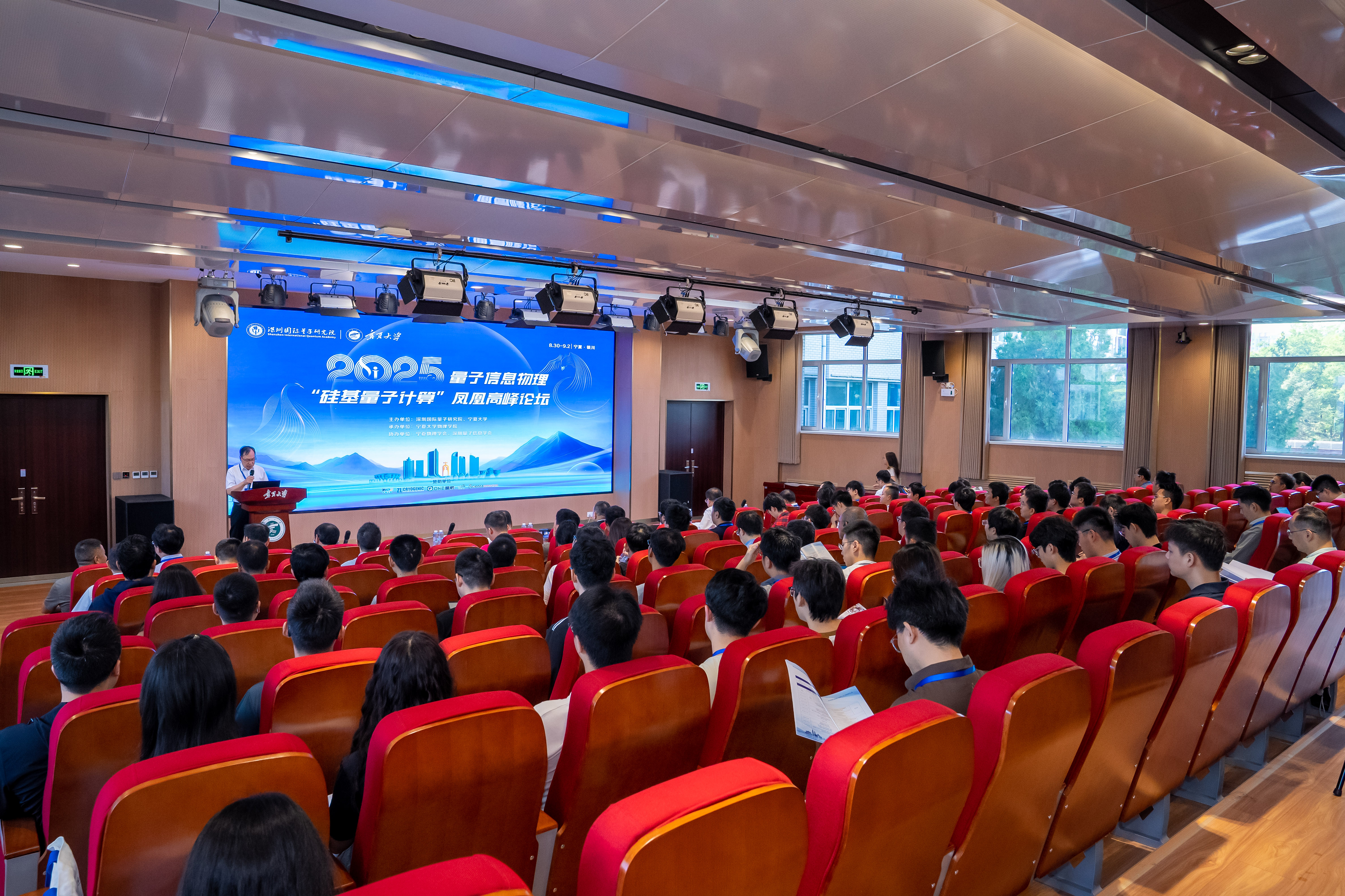 【宁夏大学新闻中心讯 物理学院】近日,2025量子信息物理“硅基量子计算”凤凰高峰论坛在宁夏银川圆满落幕。本次论坛由深圳国际量子研究院与宁夏大学联合主办,宁夏大学物理学院承办,宁夏物理学会、深圳量子信息学会协办。宁夏大学物理学院院长王旭明主持开幕式。