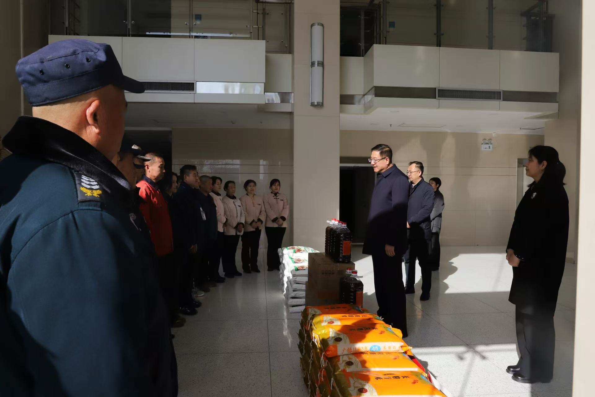 校领导一行先后前往中卫校区、怀远校区、贺兰山校区、文萃校区、朔方校区、金凤校区、新华学院和附属中学,深入校园保卫、勤务保障、水电暖运维、学生公寓管理、保洁环卫、食堂服务、物业保障等工作一线,与在岗职工亲切握手、暖心交谈,详细了解大家的工作生活、值班值守、后勤保障等情况,对大家节日期间坚守岗位、履职尽责的担当精神表示高度肯定,并为职工们送上新春祝福与学校精心准备的慰问品。