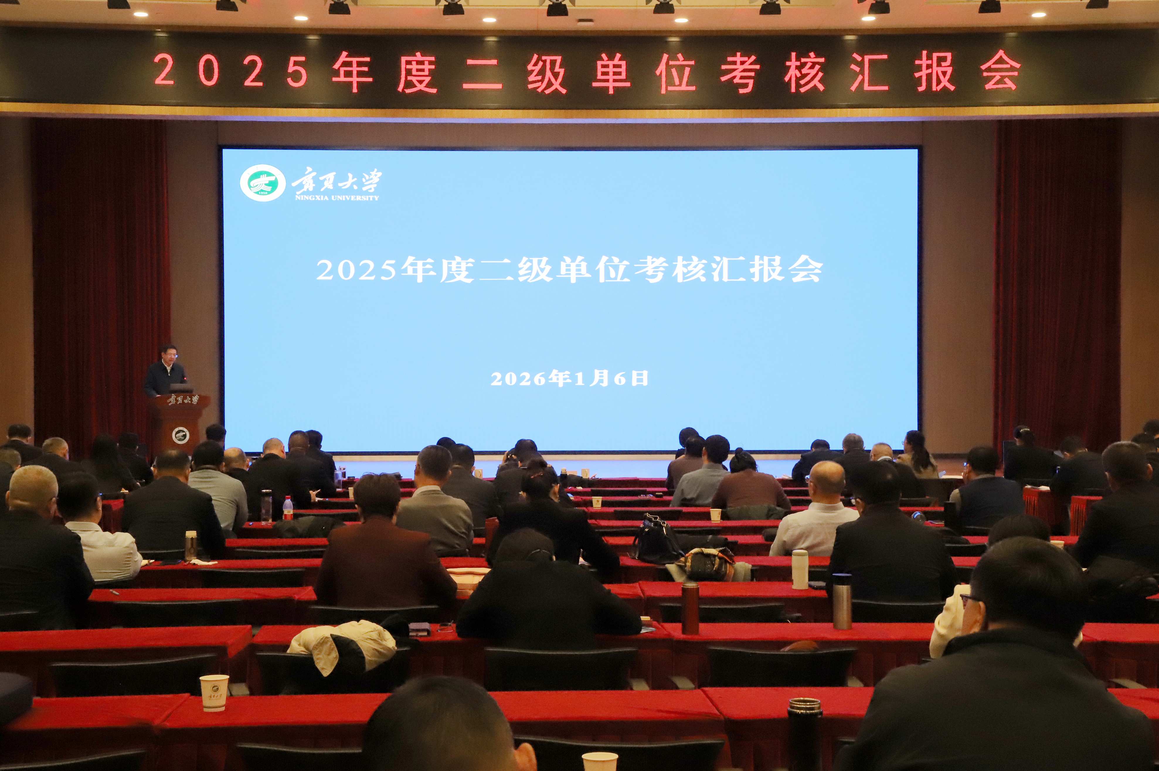 【宁夏大学新闻中心讯 冯禹君/文 姬晓姗/图】为充分发挥单位考核“指挥棒”作用,有效激发二级单位内生动力与办学活力,进一步提升治理能力和治理水平,1月6日,我校在笃行楼三楼报告厅召开2025年度二级单位工作考核汇报会。全体在校校领导,各二级单位党政负责人参加会议。校党委副书记、校长彭志科主持考核汇报会。